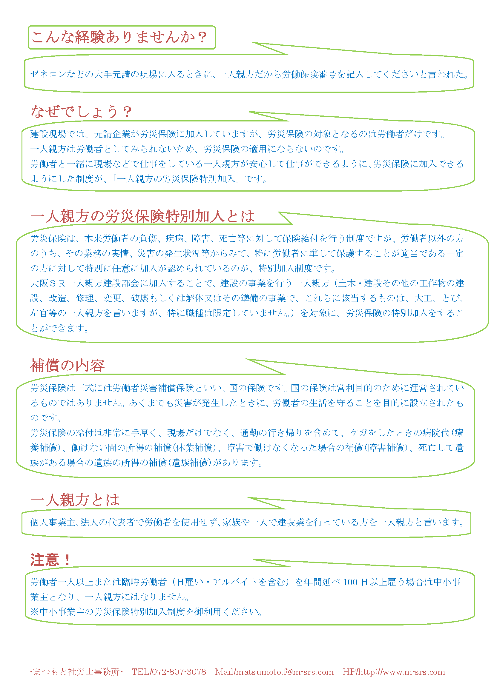 HOME > 業務内容 > 一人親方の労災保険加入手続き